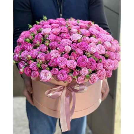Flower box with pink spray roses