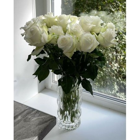 19 White Roses In Vase